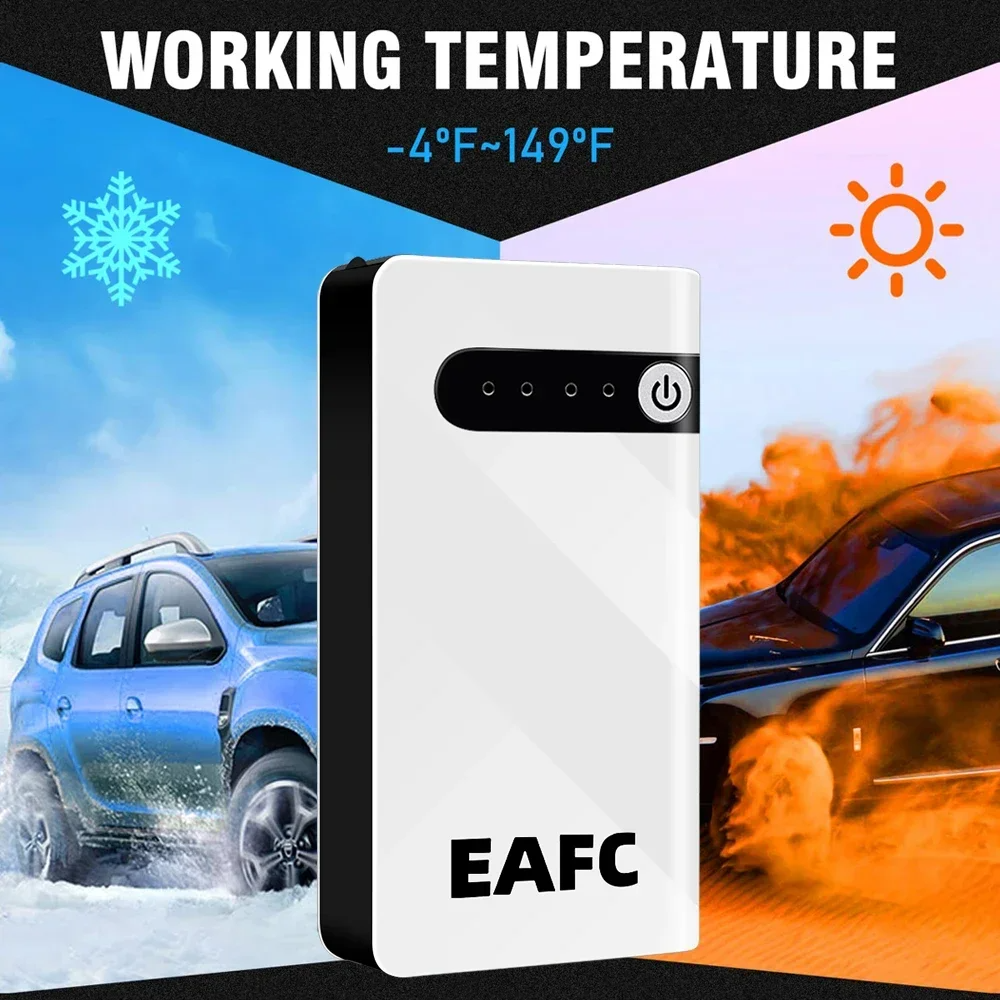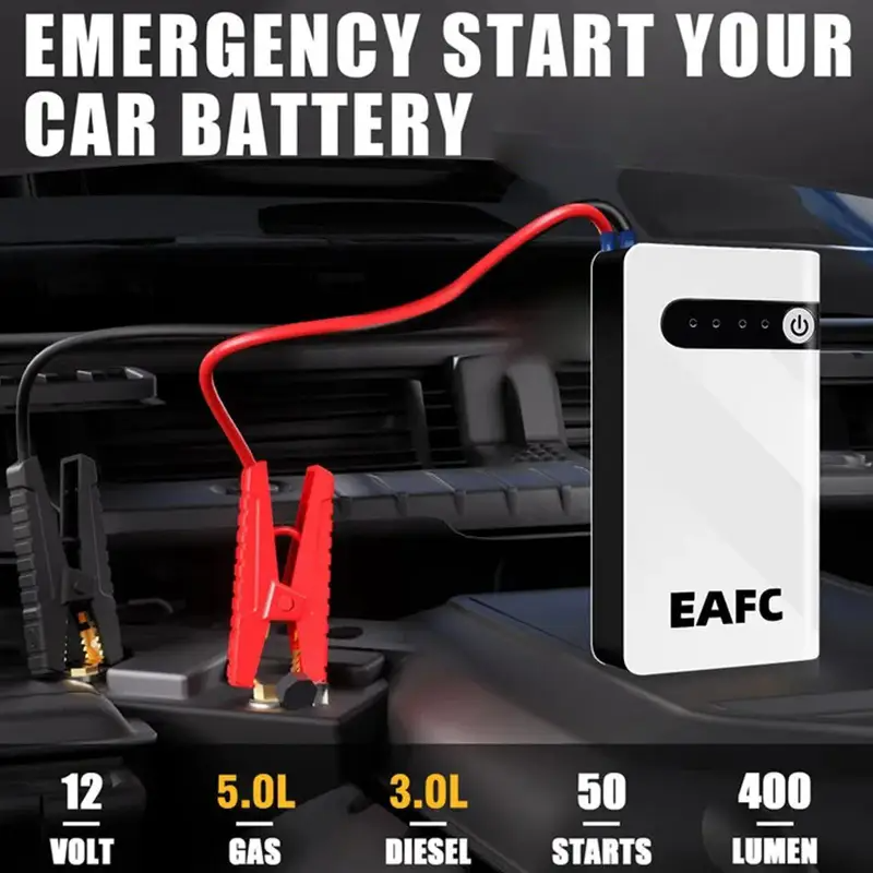 Kompaktný a prenosný štartovací zdroj EAFC je ideálnym riešením pre núdzové štartovanie vášho vozidla. Vďaka svojim malým rozmerom sa ľahko zmestí do priehradky v aute. LED indikátory zobrazujú stav nabitia internej batérie. Slúži aj ako powerbanka na nabíjanie mobilných zariadení.